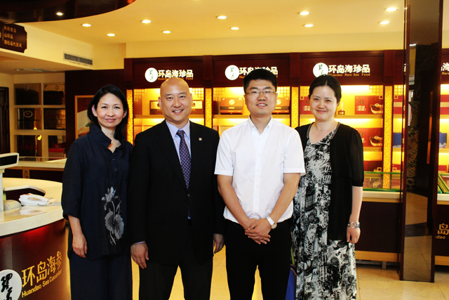 6月3日(星期三)下午16:30,市外辦美洲大洋洲處處長胡冰俠陪同美國蒙特利公園市市長梁僑漢夫婦參觀了大連環(huán)島集團(tuán)海參城和海珍品旗艦店,探討水產(chǎn)品加工、貿(mào)易領(lǐng)域的合作交流事宜。洽談后又到大連市新儒商商會參觀。